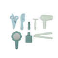 Elevate playtime for your little one with our Silicone Hairdresser Set. Crafted with care, it's lightweight and safe for endless creativity. Complete with scissors, comb, mirror, hairdryer, hair straightener, perfume/cologne bottle, brush, razor, and mirror, it's a stylish package for fine motor skill development. Plus, it comes in a chic cotton dust bag.