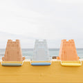 incorporating the squishiness of a silicone bucket in an exciting new castle shape - meet the clovelly castle buckets. made from the same quality silicone as our palm beach bucket, but in a square-based castle shape - exclusively designed by two mums in Australia, alongside product engineers. these silicone beach toys are designed to be mixed and matched, squished and squashed for easy travelling. these castle buckets are available in lots of fun colors with a contrasting handle. suitable for ages 18 months +. parental supervision recommended. designed in woonona. made in china.