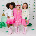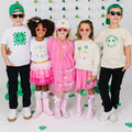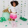 Every little girl needs the perfect hair clip to complete her look! The Shamrock St. Patrick's Patrick's Day Coquette Bow Clip is the perfect hair accessory for celebrating St. Patrick's Day. Features:  Bubblegum pink cotton fabric coquette bow with a green shamrock embroidery Pink glitter alligator clip to grip the hair  One size fits all Pair this hair clip with a matching Sweet Wink tutu and shirt for a complete head-to-toe outfit!