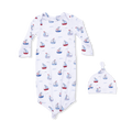 Knotted Gown and Hat - Blue Bubbly Sailboats