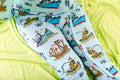 Whether you prefer a footie or romper, this all-in-one convertible piece does it all! Made with two way zippers for easy diaper changes, this adorable romper features fold over cuffs on the ankle which converts this romper to a footie as desired. This piece is designed to last twice as long as the average footie, due to the extra length and super stretchy fabric.