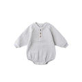 Long sleeve henley bubble romper made in soft and cozy quilted fabric. Elastic leg openings, as well bottom snap closures, ensure easy changing.