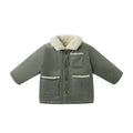 Boxy utility jacket with front patch pockets, snap closure, and sherpa collar—ideal for layering this winter.
