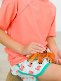 He'll be ready for the backyard or beach in this comfy short sleeve rashguard. Made from a high-quality swimwear fabric with built-in UPF 50+ sun protection, it's perfect to mix and match with his favorite swim trunks. Care Instructions: Hand wash cold with like colors; do not bleach; do not iron; line dry in shade Fabric Content: 80% Nylon, 20% Spandex