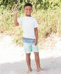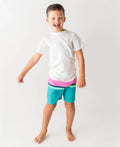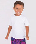 He'll be ready for the backyard or beach in this comfy short sleeve rashguard. Made from a high-quality swimwear fabric with built-in UPF 50+ sun protection, it's perfect to mix and match with his favorite swim trunks.