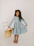 The Gwendolyn dress features a scoop back, full circle twirl skirt with a midline ruffle, pockets in the seams and Ollie Jay signature super soft fabric.