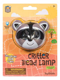 The Outdoor Discovery Critter Head Lamp is available in 2 forest creature options: a bear or raccoon. Each features an adjustable elastic headband and LED lights with steady and flashing light modes. Each critter has an adorable smiling face and LED-powered eyes. The bear is brown and tan with rounded ears. The raccoon is black, white, and gray with authentic markings. Headbands are solid black and fit most kids’ heads. Requires 2 AAA batteries. Batteries not included. • Age Grade: 3+ • Product Dimensions/Weight: 5.0 L x 2.3 W x 6.5 H / 0.2 lb • Inner Pack Dimensions/Weight: 11.0 L x 7.4 W x 6.4 H / 1.4 lb • Made In: China • Batteries required