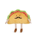 Get ready to add some spice to your life with our adorable Paco Taco Plush! Paco features all the classic taco toppings like lettuce and tomato peeking out from the top, along with embroidered rosy cheeks, a sweet smile, and a charmingly curled mustache. With whimsical striped arms and legs, this plush taco is brought to life through its soft, huggable design and delightful attention to detail. Whether you're giving it to a friend, loved one, or someone who simply loves tacos and plushies, Paco Taco Plush is sure to bring joy. This playful companion is more than just a toy- it's a friend that sparks smiles and fuels the imagination. Zero calories, 100% fun!