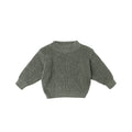 Adorable chunky knit sweater with ribbing at the sleeve and neck openings.