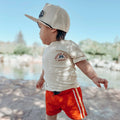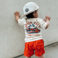 Designed by a boy mom who knows what kids need—these Retro-Wave Hybrid Boardshorts are built for all-day play, from the backyard to the beach. Made with a lightweight, moisture-wicking blend of 92% polyester and 8% spandex, they’re ultra-comfortable, quick-drying, and completely liner-free (because no one likes an annoying liner!). Why You'll Love Them: Hybrid Performance Fabric – Breathable, stretchy, and moisture-wicking for ultimate comfort. No Liner, No Fuss – Say goodbye to itchy, restrictive mesh! Functional Pockets – Side and back pockets to stash treasures and snacks. Elastic Waistband – Easy-on fit with a comfy stretch. Retro-Inspired Vibes – A bold rad/orange checkerboard print with contrast ribbing down the sides.
