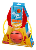 This basketball game set from Toysmith is a great item for kids who love basketball or for adults to use inside or outside. Each peggable blister packet holds 1 plastic rim with a net and 1 small basketball. Made of durable materials, the yellow plastic rim measures 8 inches in diameter and is attached to a plastic clip that hooks onto door frames or other edges. A red, white, and blue net attaches to the rim. Also includes a 5-inch orange and black rubber basketball.